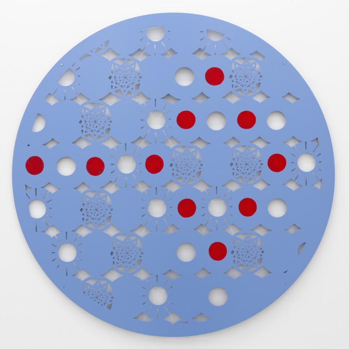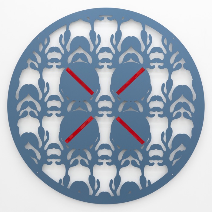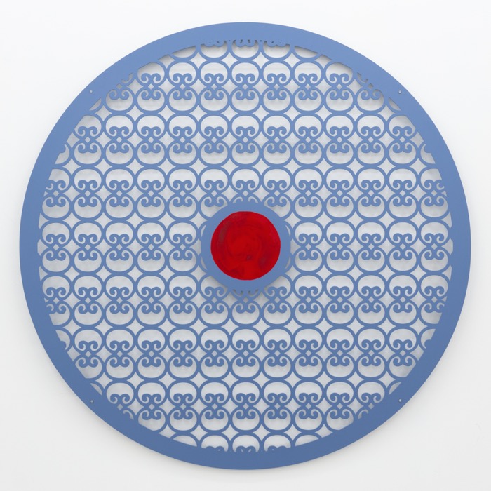 2022 Lonnie Hutchinson powdercoated aluminium, flashe 1000mm diameter Crux decussata 2022 Lonnie Hutchinson powdercoated aluminium, flashe 1000mm diameter I am the sea (the sea is me)
