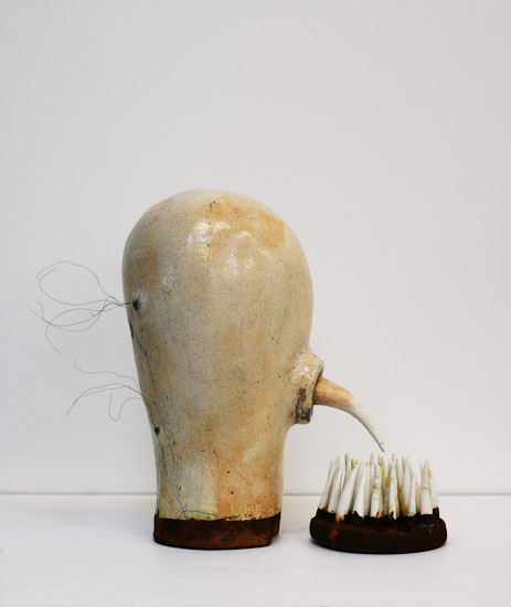 2014 Julia Morison glazed stoneware, tin, horse hair 300 x 230 x 180 mm, 90 x 500 x 90 mm HEADCASE: 20140912E 2014 Julia Morison glazed stoneware, tin, horse hair 300 x 230 x 180 mm, 90 x 500 x 90 mm HEADCASE: 20140912L