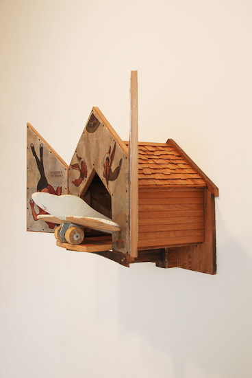 2011 Shane McGrath recycled timber, burnished tin, homemade toy, decals Having dwelt in the house of holies (detail) 2011 Shane McGrath recycled timber, burnished tin, homemade toy, decals Pick-up-stix